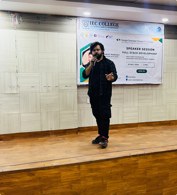 The session delved into key concepts of web development, including the MERN stack (MongoDB, Express.js, React.js, and Node.js), which is widely used for building scalable and dynamic applications. Dhruv explained how these technologies work together, simplifying workflows and enabling developers to create full-stack projects efficiently. By sharing real-world examples, he demonstrated the relevance of these tools in solving industry challenges.